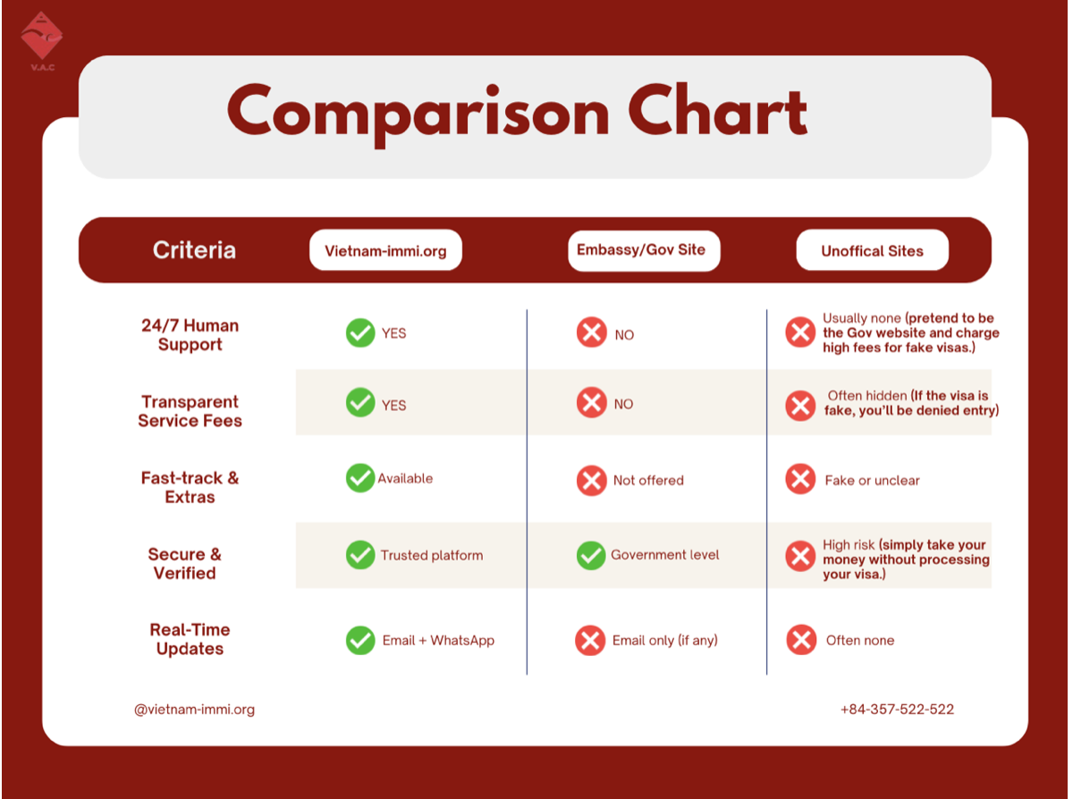 The detailed Comparison chart between Vietnam-immi.org and other unofficial websites