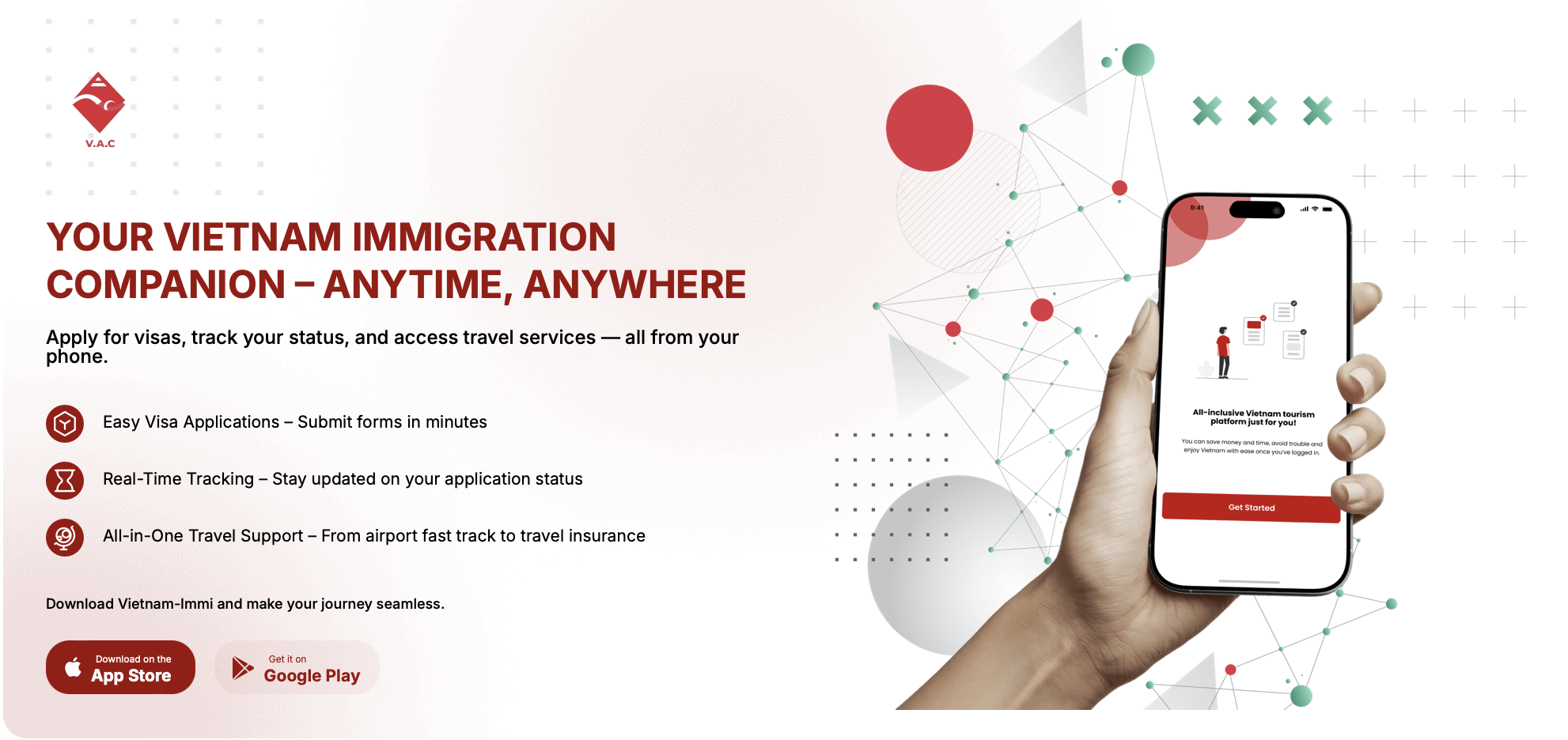 The interface of Vietnam-immi.org. You can also download Mobile App at Apple Store and Google Play
