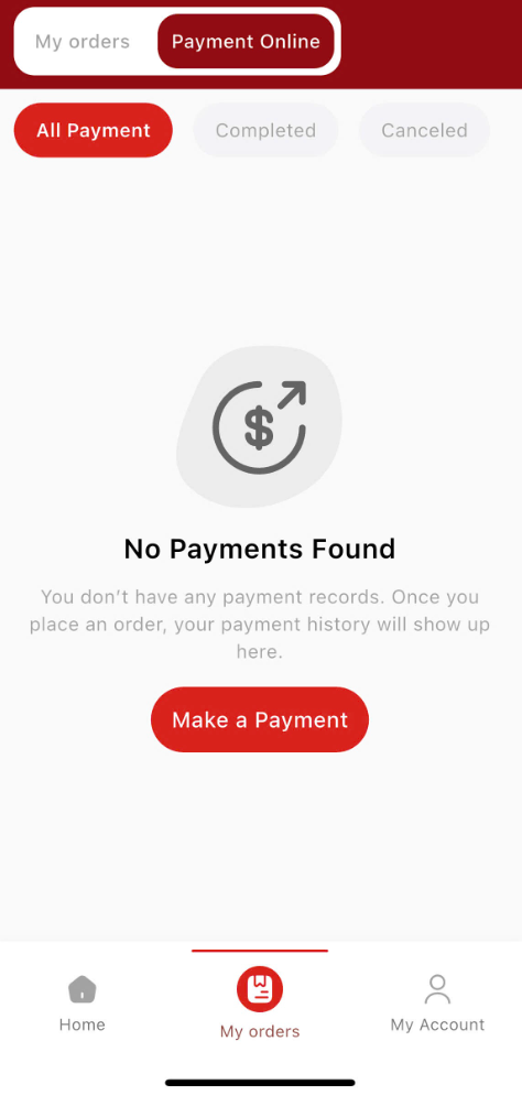 After logging in, go to the My Orders section and select Payment Online - Make a Payment. This section is dedicated to handling payments related to visa applications and other immigration.