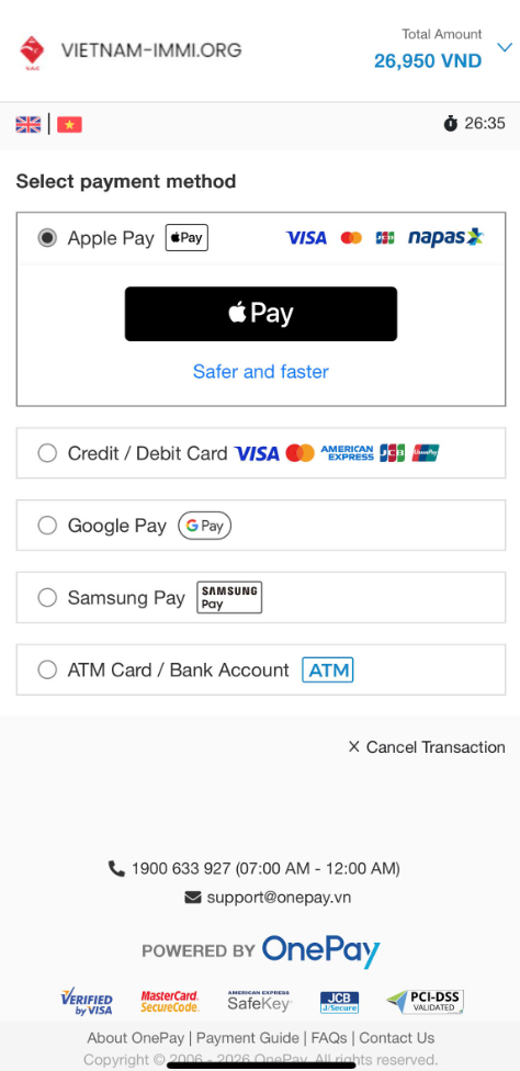 Making payments for Vietnam immigration services is simple and convenient with the Vietnam Immi mobile app. Designed for international travelers, the app allows users to complete payments securely in just a few minutes using trusted payment methods on both iOS and Android devices.
