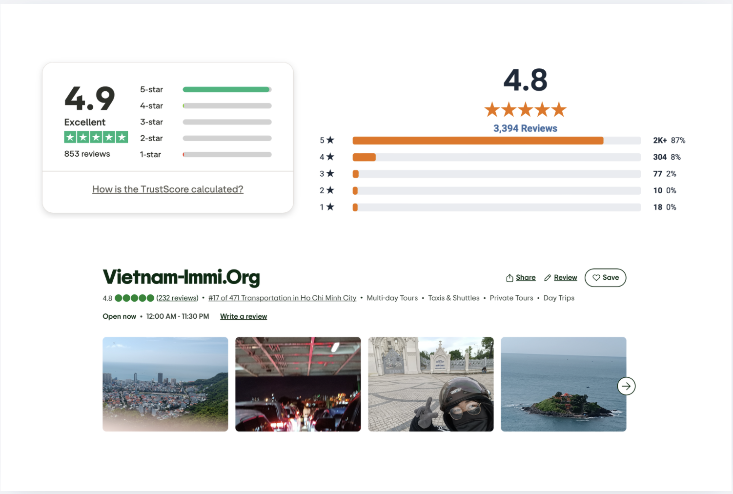 Vietnam-immi.org ranks 4.9/5 on Trustpilot; 4.8/5 on ShopperApproved; and 4.8/5 on TripAdvisor (The latest update)