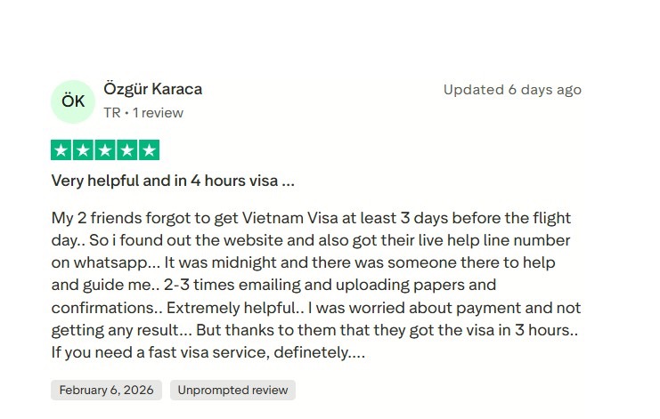Reviews often highlight successful urgent handling and fast approvals, sometimes described as a Vietnam visa solution in hours. Applicants appreciate agencies that respond promptly and act quickly when time is short. For urgent applications, travelers can apply directly here