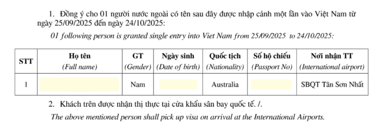 In summary: From September 16, 2025, all Vietnam visa approval letters will feature the new table format, making it more user-friendly and immigration-friendly. The process remains the same, but the document is now clearer, more professional, and easier to use.