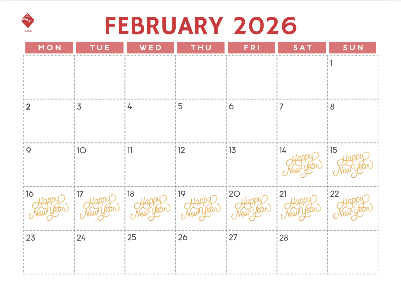 Holiday period: From Saturday, February 14, 2026 to Sunday, February 22, 2026