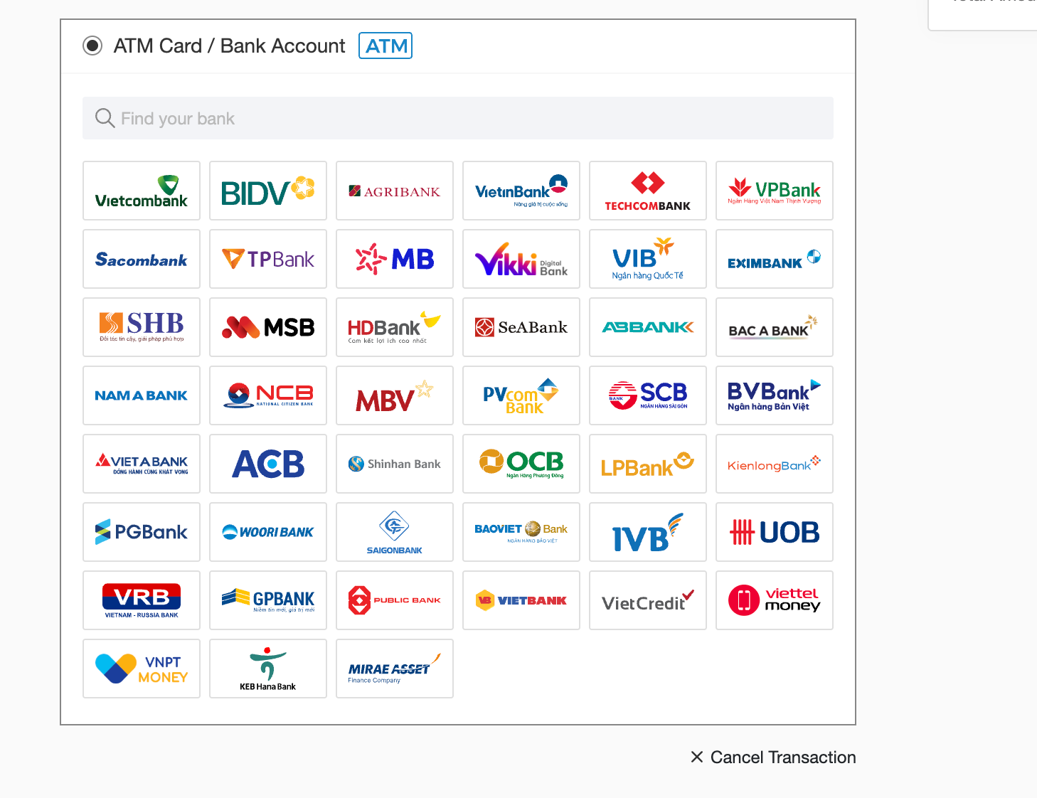 ATM Card / Bank Account - For domestic users in Vietnam, we offer the option to pay through the NAPAS banking network. This allows residents to transfer payments via their local ATM or online banking system with ease.